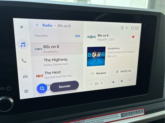 - 8-in. Toyota Audio Multimedia display with 6-speaker audio system, wireless Apple CarPlay® & Android Auto™ compatibility, SiriusXM® 3-month trial subscription. See toyota.com/connected-services for details.